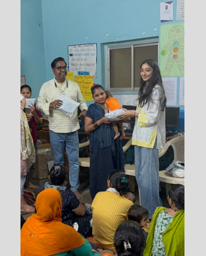 With The Tiny Footprints initiative surging ahead at full throttle, Riyana has already distributed over 7000 reusable diapers, positively impacting more than 1,500 newborns and families across India. During her recent trip to Mumbai, she personally delivered diapers to underprivileged communities in Palghar, Dharavi, Bhiwandi, and Dahisar, ensuring that every package reached the hands of mothers who need them most. Partnering with organizations like CCDT in Mumbai and Deenanath Mangeshkar Hospital in Pune, the initiative is not only easing financial pressures on families but also preventing thousands of disposable diapers from polluting the environment and adding to solid waste. To date, The Tiny Footprints has mitigated an estimated 50 metric tons of waste, and Riyana is already charging ahead to double that impact—and beyond. Seeing parents relieved and babies cared for with dignity has reinforced her belief that small actions can create powerful change. These moments—captured in the photographs below—represent joy and compassion in motion: one reusable diaper, one tiny footprint, and one brighter future at a time.