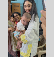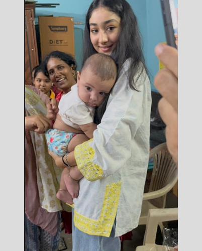 With The Tiny Footprints initiative surging ahead at full throttle, Riyana has already distributed over 7000 reusable diapers, positively impacting more than 1,500 newborns and families across India. During her recent trip to Mumbai, she personally delivered diapers to underprivileged communities in Palghar, Dharavi, Bhiwandi, and Dahisar, ensuring that every package reached the hands of mothers who need them most. Partnering with organizations like CCDT in Mumbai and Deenanath Mangeshkar Hospital in Pune, the initiative is not only easing financial pressures on families but also preventing thousands of disposable diapers from polluting the environment and adding to solid waste. To date, The Tiny Footprints has mitigated an estimated 50 metric tons of waste, and Riyana is already charging ahead to double that impact—and beyond. Seeing parents relieved and babies cared for with dignity has reinforced her belief that small actions can create powerful change. These moments—captured in the photographs below—represent joy and compassion in motion: one reusable diaper, one tiny footprint, and one brighter future at a time.